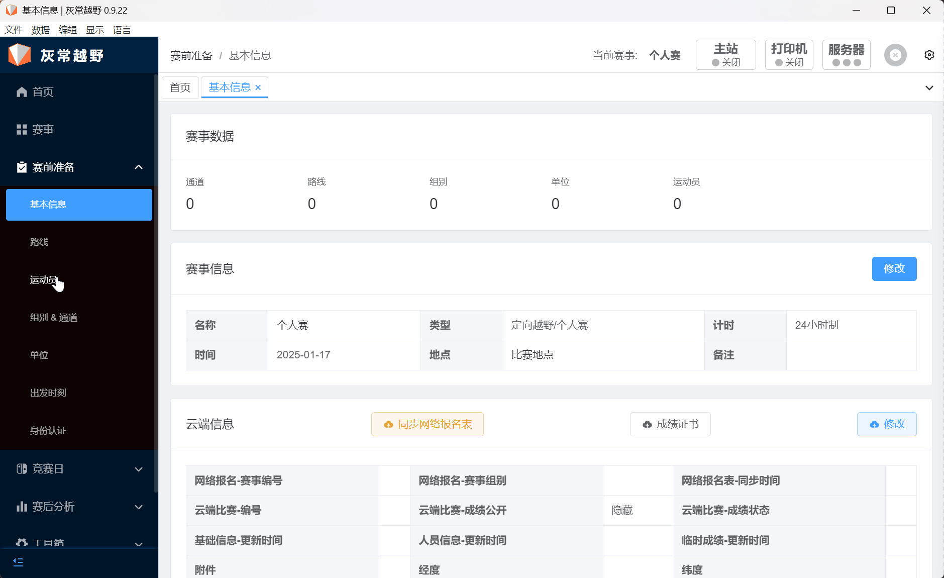 进入成统软件后,点击左侧菜单栏赛事栏目下,选择新增赛事,对赛事进行内容填写,即可完成赛事创建,点击打开按钮,即可进入赛事。